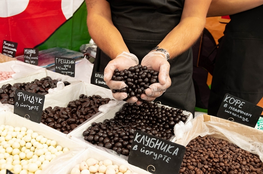 Настоящие гурманы оценят богатый выбор сортов чая из Индии и Крыма. Для сладкоежек привезли мармелад, кисели без добавления сахара, пряники ручной работы. Для полезного перекуса ягоды и орехи в шоколадной глазури, вяленая клюква и манго, крымские сладости, продукция из кедрового ореха. Представлены качественные ароматные масла холодного отжима из Самарской области и Удмуртии. На ярмарке можно попробовать более 10 видов пахлавы, рахат-лукум, конфеты ручной работы из перетертых малины, клубники и инжира, мясные полуфабрикаты из Ижевска, приготовленные по авторским рецептам, соленья от фермерского хозяйства.